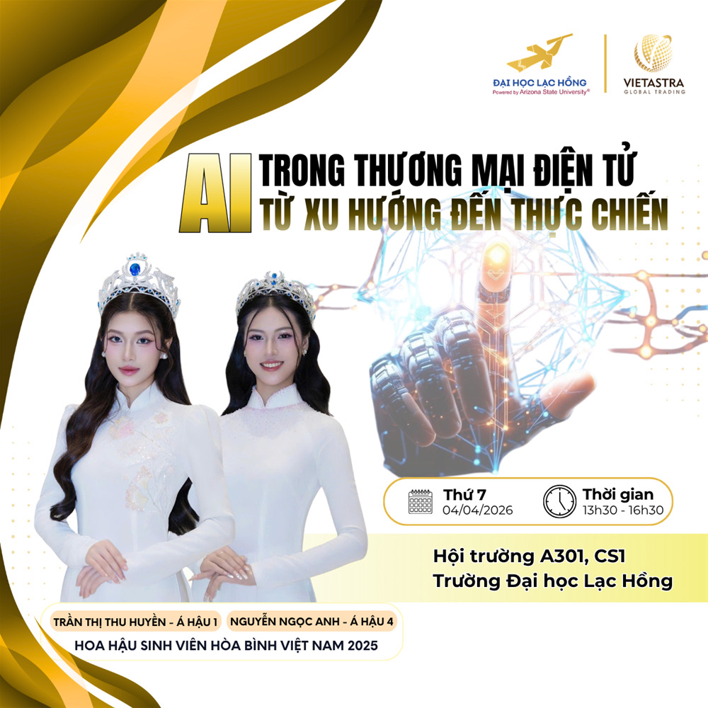Nhằm giúp sinh viên hiểu đúng – làm thật – và tự tin vươn xa, Trường Đại học Lạc Hồng phối hợp cùng Vietastra Global Trading tổ chức Workshop “AI trong Thương mại điện tử – Từ xu hướng đến thực chiến”.