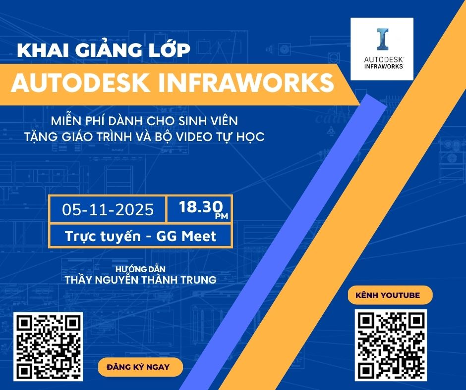 🎉 Khoa mở Lớp InfraWorks nền tảng – HOÀN TOÀN MIỄN PHÍ – dành cho cộng đồng và sinh viên trong Khoa.