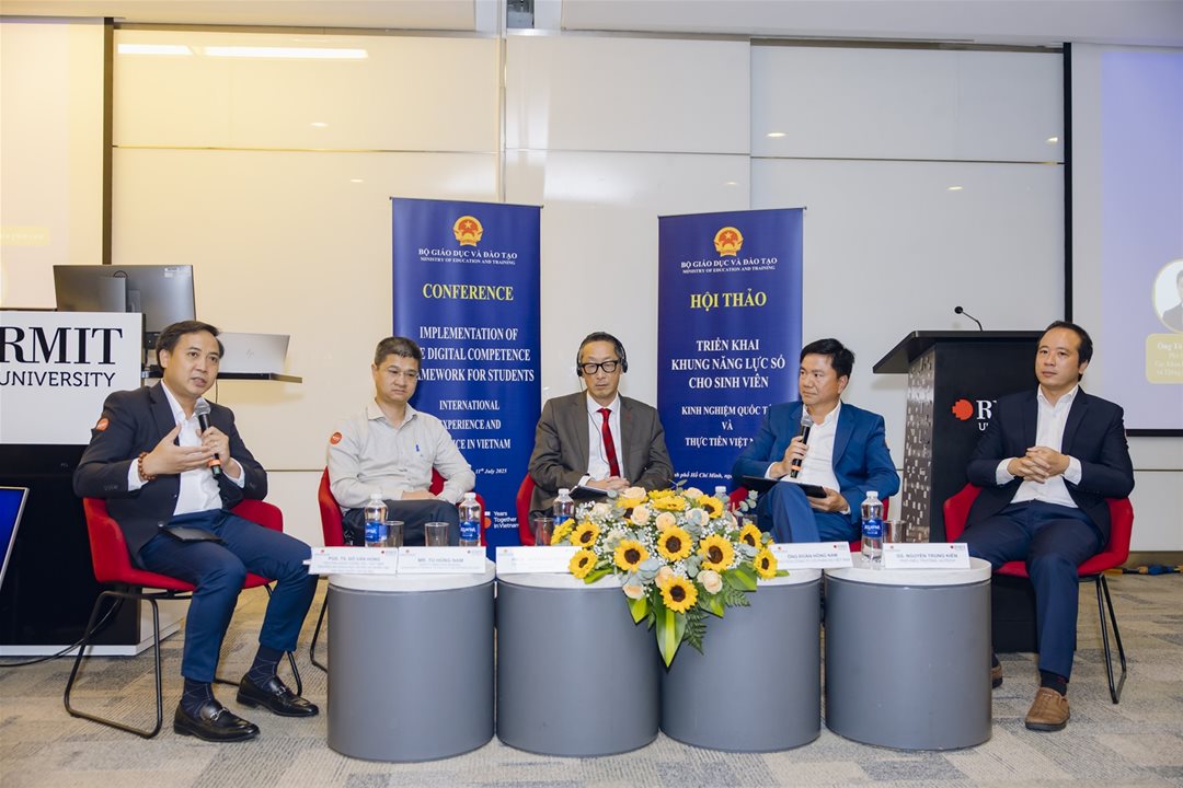 During the workshop, delegates heard presentations from RMIT University Melbourne (Australia) on integrating AI into developing digital competencies for learners. They also gained practical insights from prestigious Vietnamese universities such such as Ho Chi Minh City Open University, University of Social Sciences and Humanities (VNU Hanoi), and Ho Chi Minh City University of Technology, alongside models for enhancing digital skills through micro-credential courses from the GIZ organization.