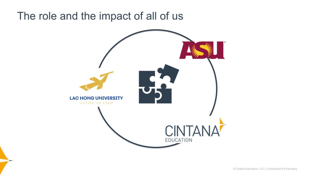 Based at Lac Hong University (LHU), this initiative represents a comprehensive strategic collaboration between LHU, Arizona State University (ASU), and Cintana Education, officially established on March 12, 2025. This partnership marks a significant milestone in LHU’s journey toward international integration, embodying the university’s LHU 2.0 vision to enhance educational quality, research capacity, and global engagement.