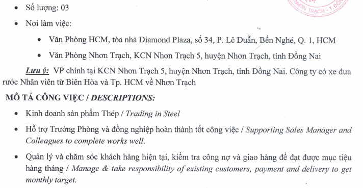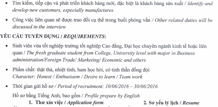 3. Vị trí tuyển dụng: Nhân viên kinh doanh