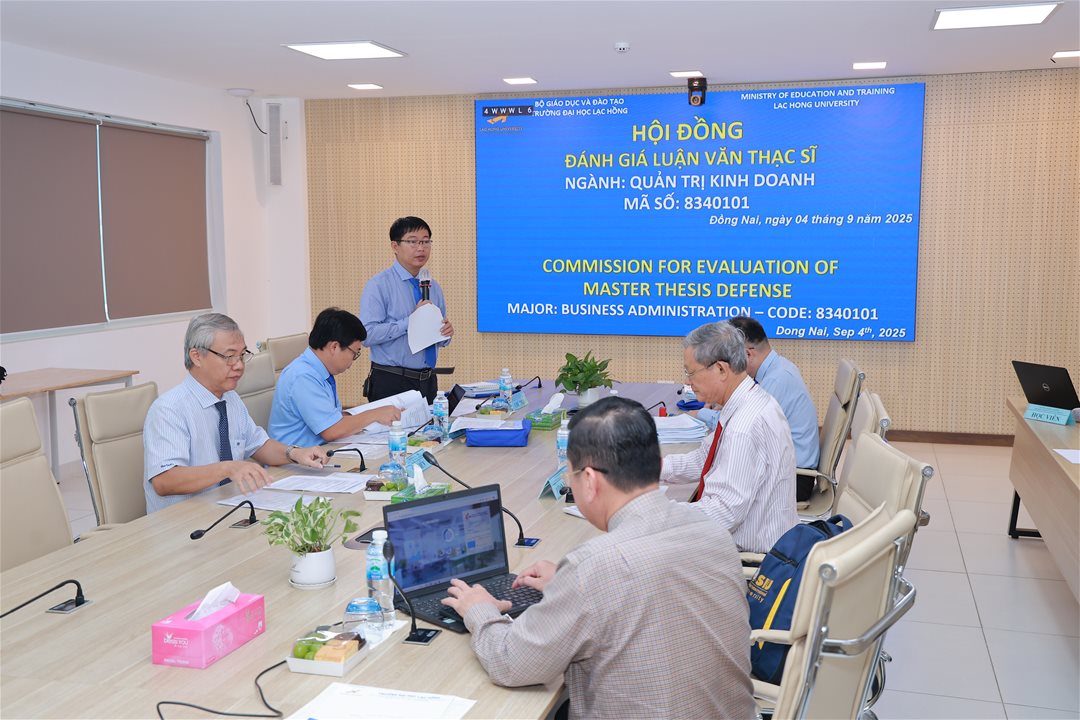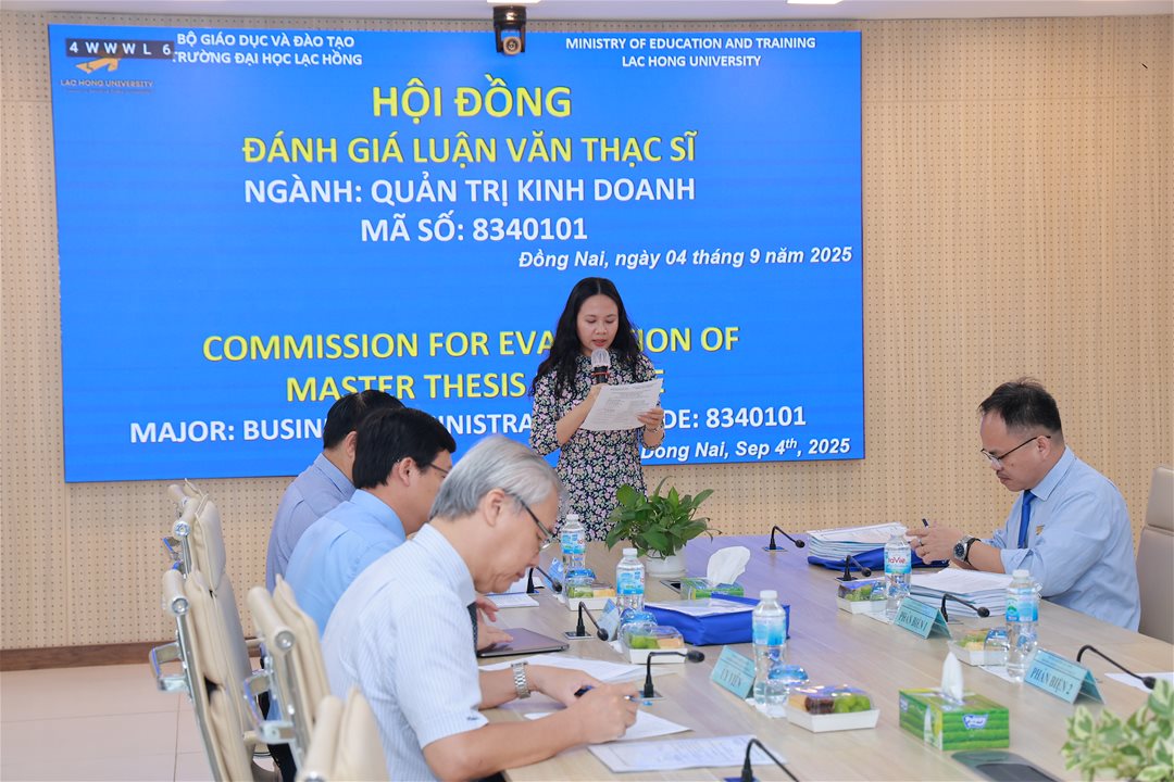 Ngày 04 tháng 09 năm 2025, tại phòng họp cơ sở 1 của Trường Đại học Lạc Hồng (LHU), 13 học viên ngành Quản trị kinh doanh đã xuất sắc hoàn thành và bảo vệ luận văn thạc sĩ của mình. Buổi bảo vệ diễn ra trong không khí trang trọng và đầy tính học thuật, đánh dấu một bước ngoặt quan trọng trong hành trình học tập và nghiên cứu của các học viên.