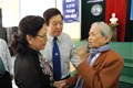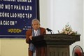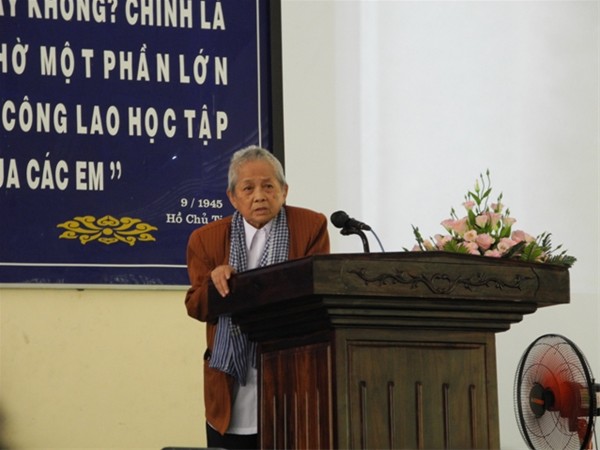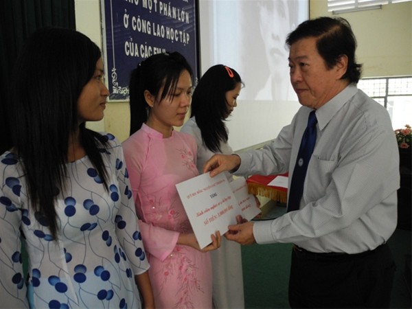 People's Teacher Dr. Do Huu Tai on behalf of Mrs Le Thi Tru awards scholarships to the receivers.