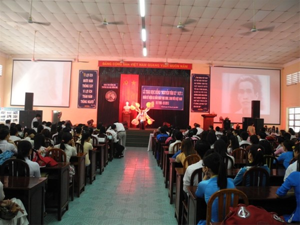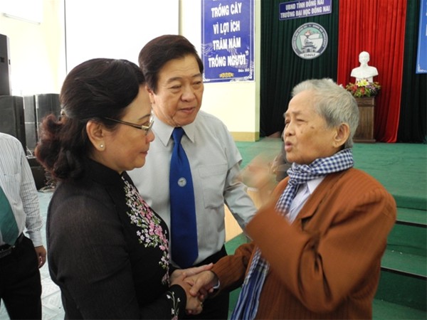At the ceremony, Nguyen Van Ky’s wife Le Thi Tru had a talk with students of Lac Hong and Dong Nai. She reviewed glorious traditions of our ancestors for students and reminded them of living well to be able to contribute to the development of the country.