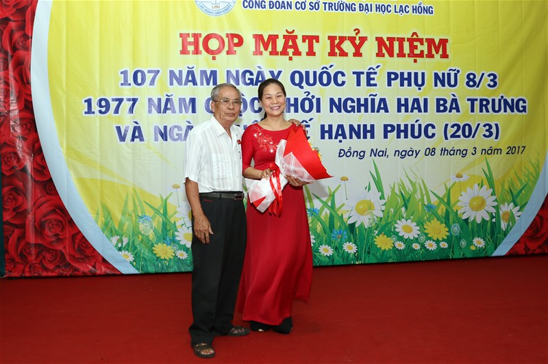 At the event, on behalf of LHU women collective Ms. Le Thi Thu Huong - Members of the Trade Union Executive Committee - Head of Women's Board reviewed the history of the International Women’s Day and highlighted the glorious tradition of Vietnamese women. The meeting was an occasion to honor women's significant contributions to LHU construction and development. On behalf of all women, she received congratulation flowers from the University Party Committee. In addition, the Organization Board presented gifts including cakes and bonus to all female officials, lecturers and staff.