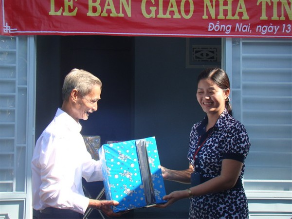 After reading the decision from the local authority, Dr. Tran Hanh has presented the house to Mr. Ha Van Tri. In that particular moment, Mr. Ha Van Tri was touched and thanked the Management Board of Lac Hong University as well as the local authority for giving him a house. His 62-year dream has come true.