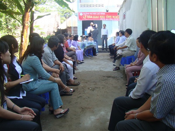 Morning of November 13th, 2010, at an address No 13 / 6 Quarter 2, Buu Long Ward, Bien Hoa City, Dong Nai Province, the ceremony of presenting a charitable house to Mr Ha Van Tri took place. This is the house donated by the Union, Union - Student Association, Union Branch and Charity Branch of Lac Hong University with a total amount of nearly 60 million VNDs.