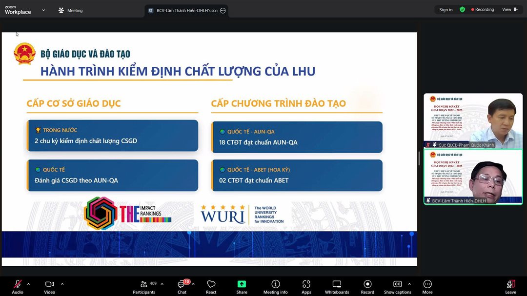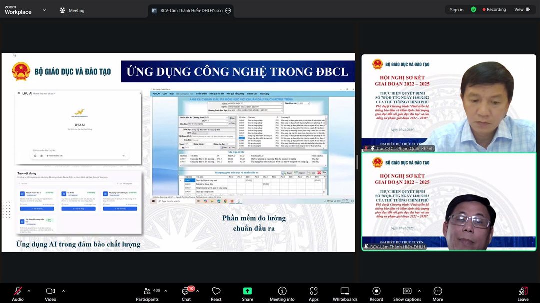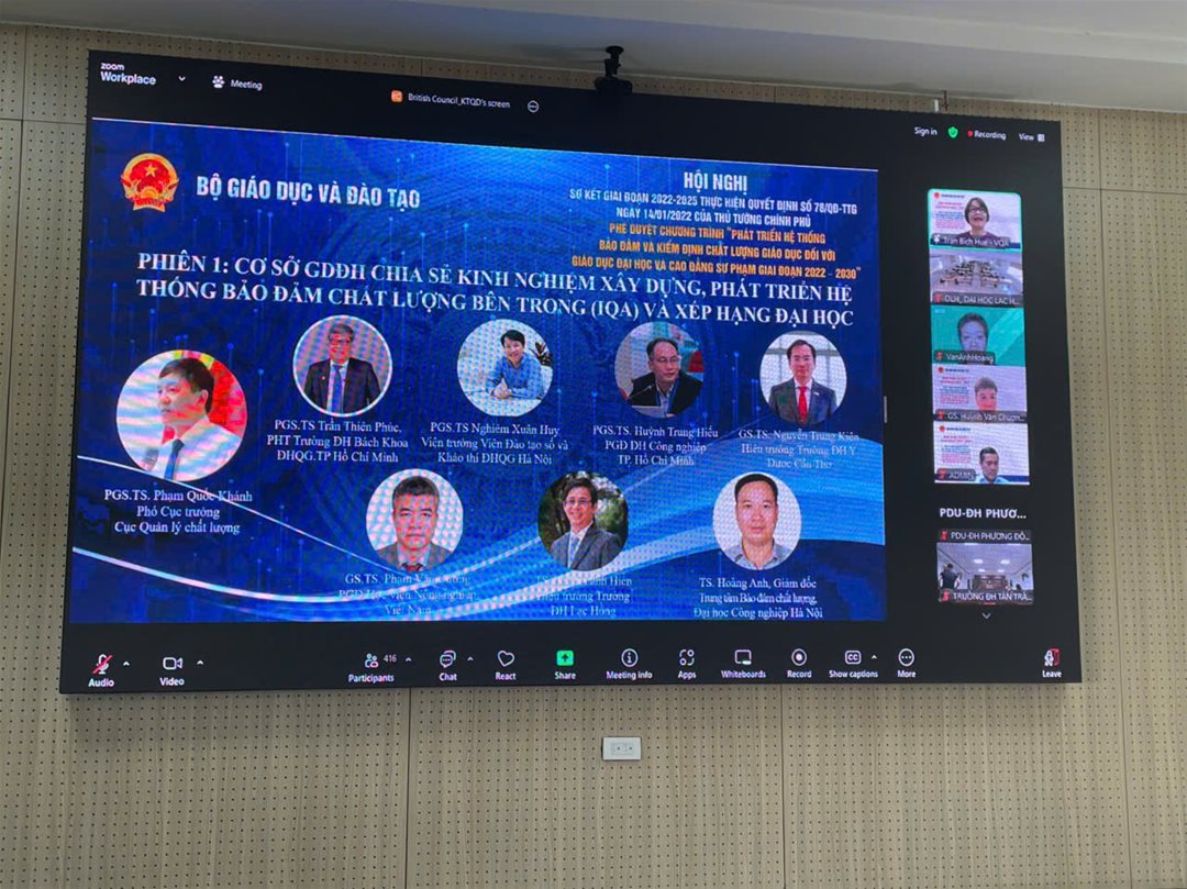 The mid-term review conference on the implementation of Decision No. 78/QĐ-TTg, issued by the Prime Minister approving the “Program on Developing the System for Quality Assurance and Accreditation in Higher Education and Pedagogical Colleges for the 2022–2030 Period”, was held online under the organization of the Department of Quality Management (Ministry of Education and Training), with participation from seven higher education institutions nationwide.