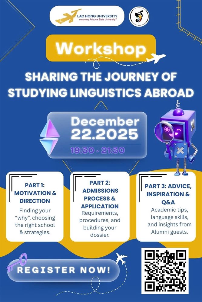 The workshop “Sharing the journey of studying linguistics abroad", organized by the Faculty of English Language, LHU, will share real experiences, helpful study tips, and inspiring stories from alumni who have studied abroad.