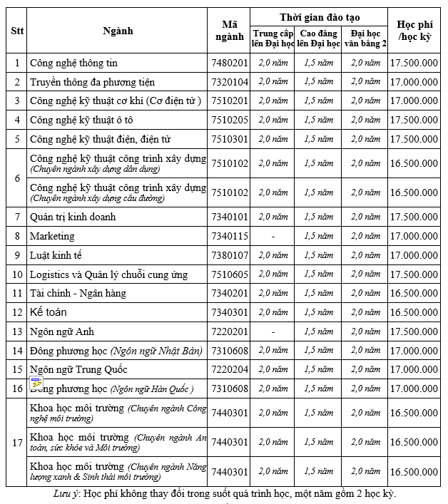 • - Lệ phí xét tuyển: 500.000đ/ thí sinh.