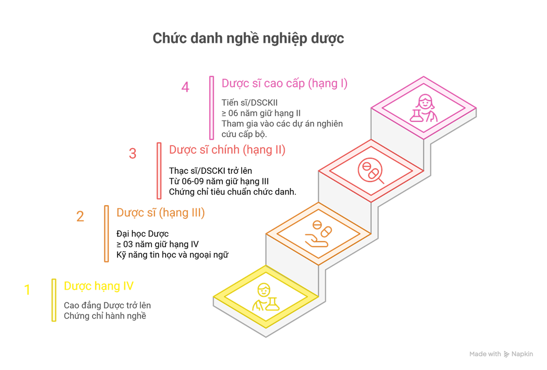 Senior Pharmacist (Grade I): Doctorate/Specialist Pharmacist Level II, at least 6 years holding Grade II or equivalent professional title (including at least 1 year in Grade II Pharmacy), participation in research projects at the ministerial level or higher.